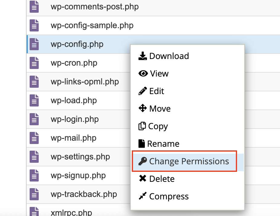 3. Select the file by right-clicking, and then click ‘Change Permissions‘