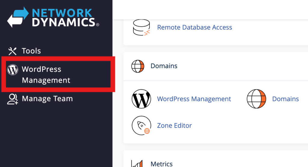 2. Navigate to the ‘WordPress Management‘ from the side menu on the left-hand side of the cPanel interface