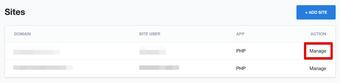 3. From the list of sites, click ‘Manage‘