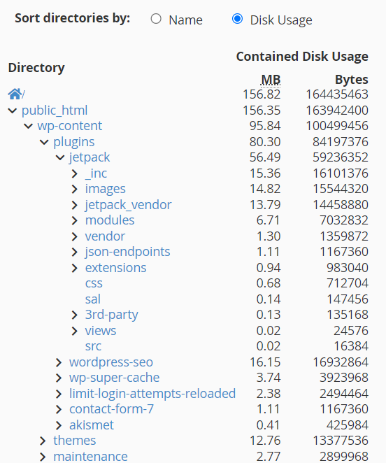 5. This is a great way to quickly identify what and where disk space is being used. Additionally, clicking the folder name (in blue) will open the File Manager to that folder.