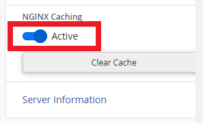 2.Look for the ‘NGINX Caching’ section in the ‘General Information’ panel on the left then click the toggle switch labelled ‘Active’ to disable caching.