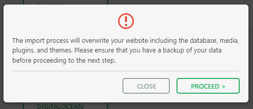 4. After that, once you select the backup file, the import process will begin. After analyzing, the ‘Proceed‘ button will appear along with a caution statement about the import process. Then, click the ‘Proceed‘ button to continue.