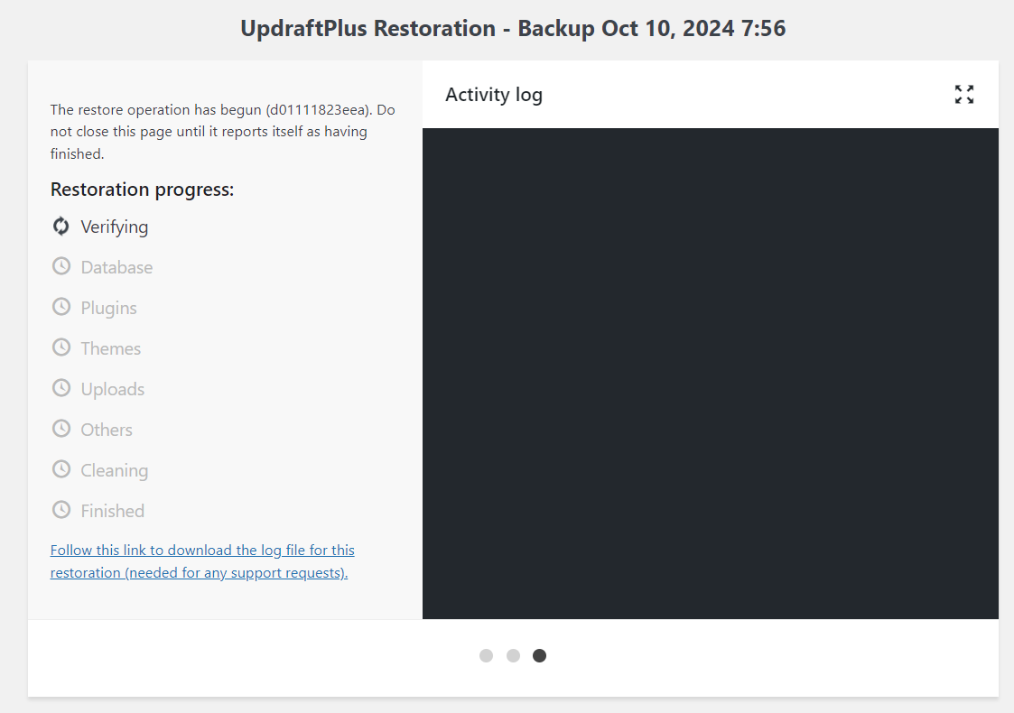 8. Then, once the restoration process begins, do not refresh or click anything on the site to avoid interrupting the process.
