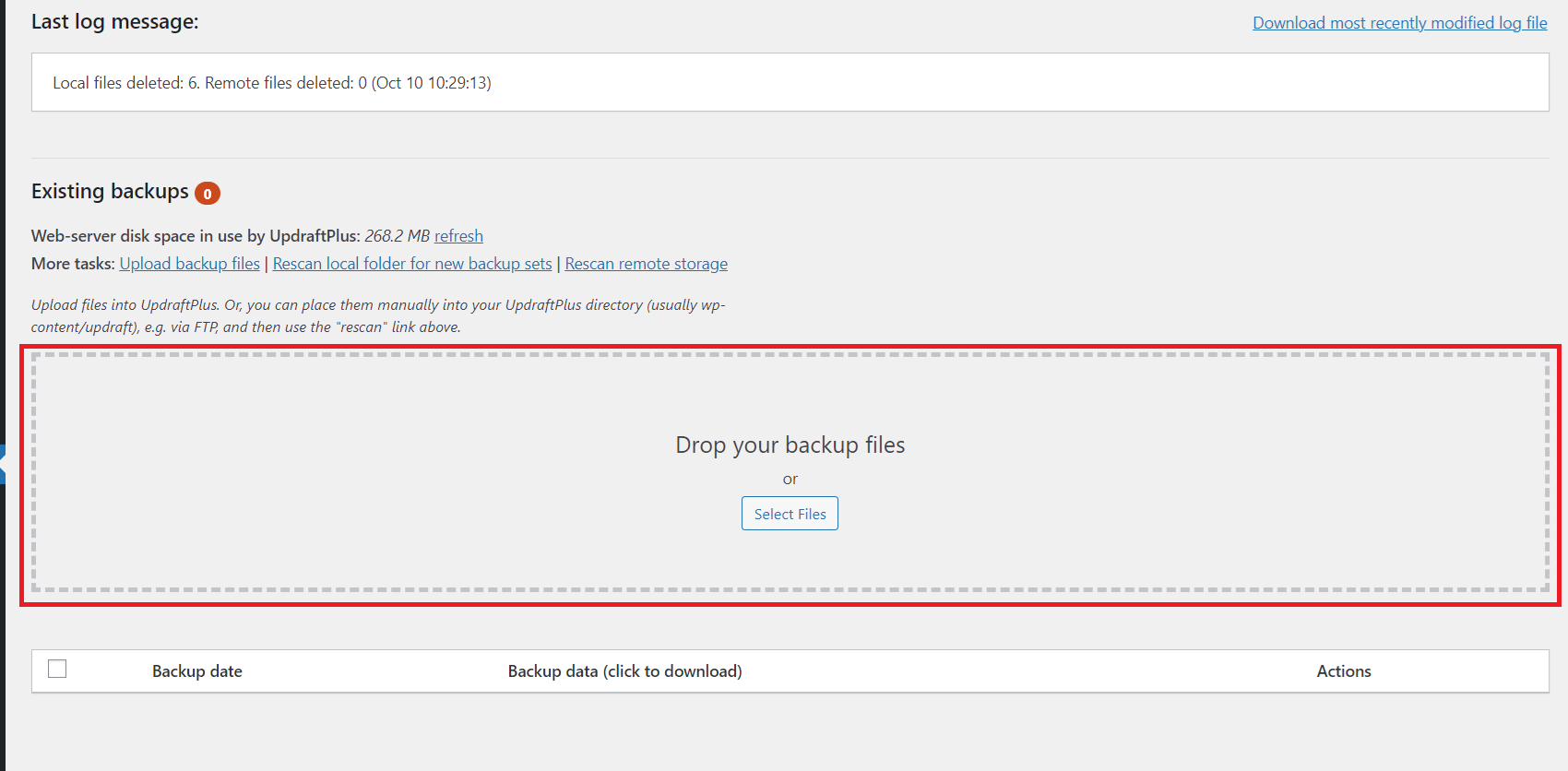 UpdraftPlus: import/restore #