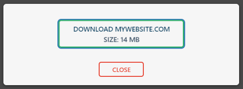 8. A pop-up will appear showing the status of the backup process. Once it’s complete, it will display the size of your website. Click ‘Close‘ to begin downloading your backup.