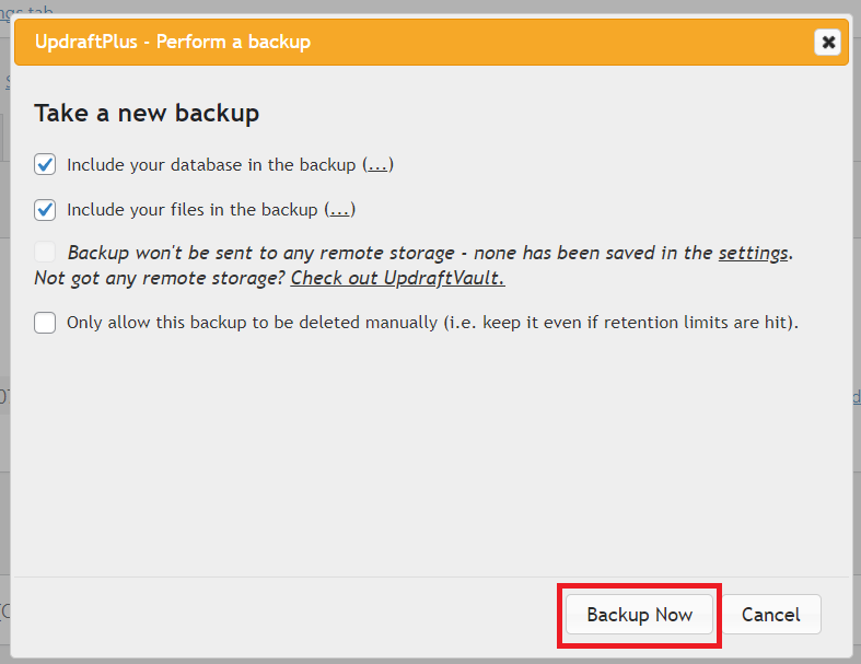 UpdraftPlus: Create a backup #