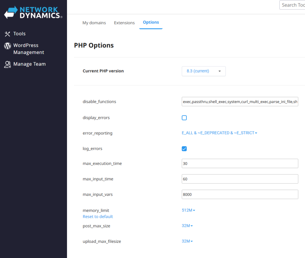 Available PHP limits that you can change on the fly with Network Dynamics hosting plans: