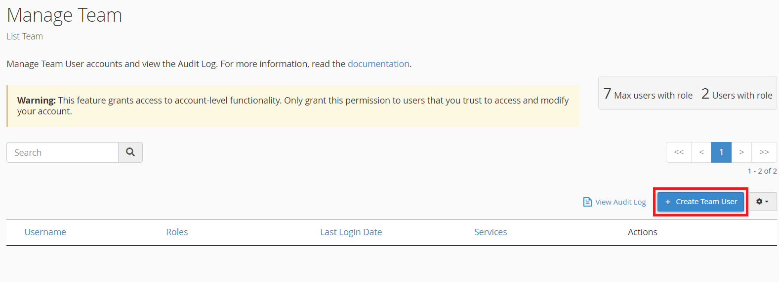 3. Then, from the Mange Team page, click ‘Create Team User‘