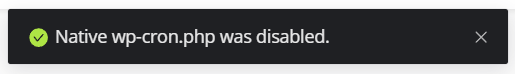 5. Finally, once enabled, you should see a notification stating that the “native wp-cron is disabled,” indicating that WP Toolkit has taken over the wp-cron setup.