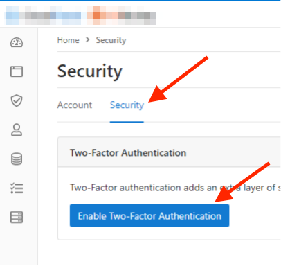 3. Click on the Security tab, then click on Enable Two-Factor Authentication.