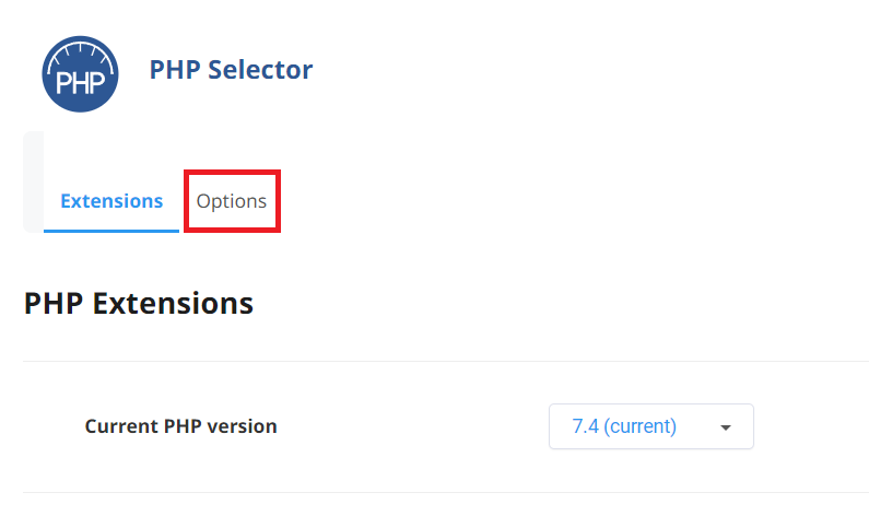 3. In the PHP Selector page, click the ‘Options’ tab.