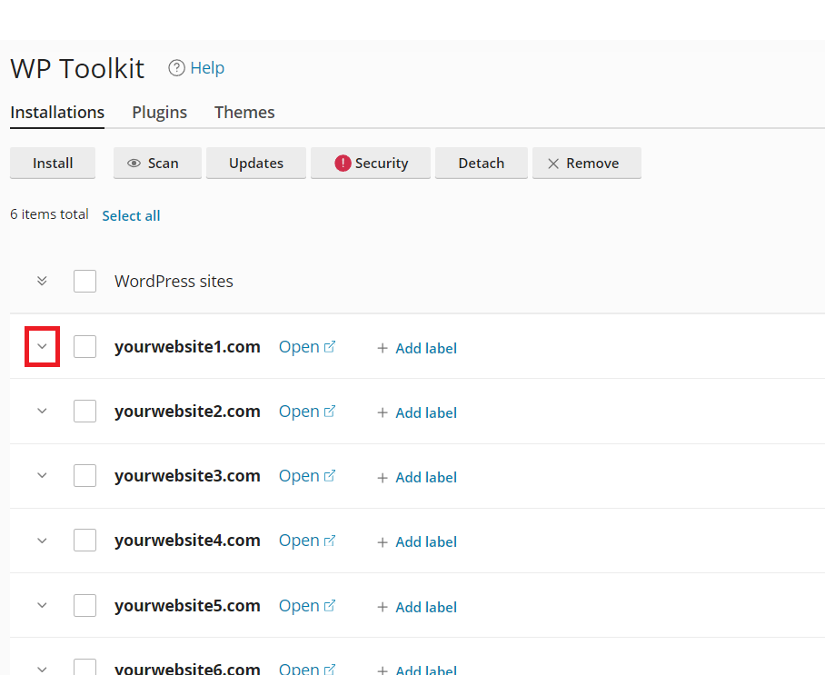 3. Then, click the ‘expand‘ (down arrow) to view the details of your WordPress installation. If it’s already expanded, move on to step 4.