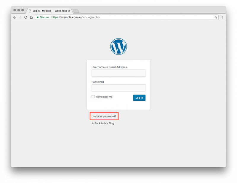 2. Once at the login page, click ‘Lost your password?‘.
