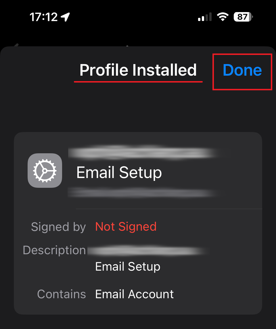 6. Finally, if you enter the correct credentials, you will see a ‘Profile Installed‘ screen.