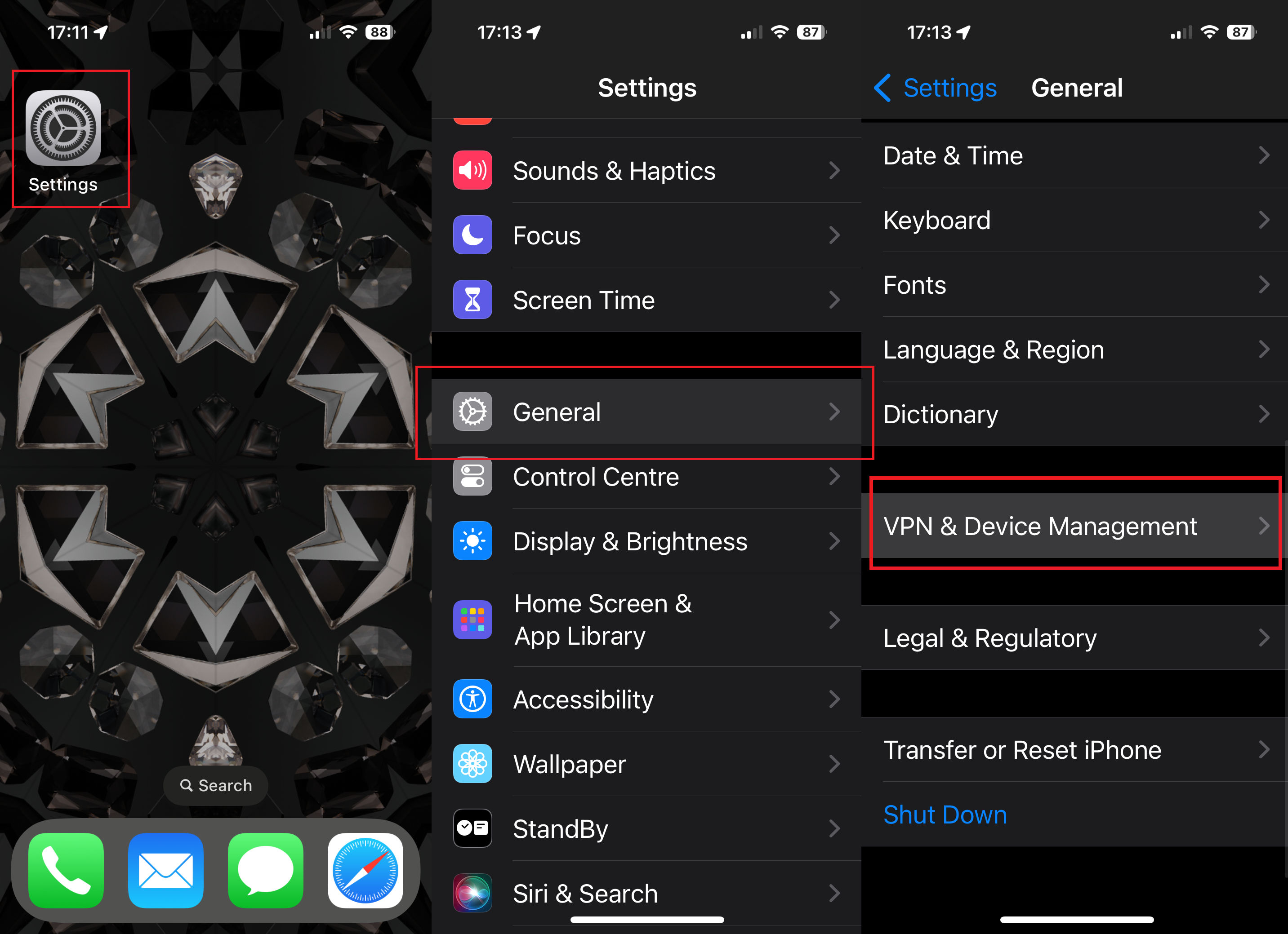 - Then, scroll down and tap ‘VPN & Device Management‘