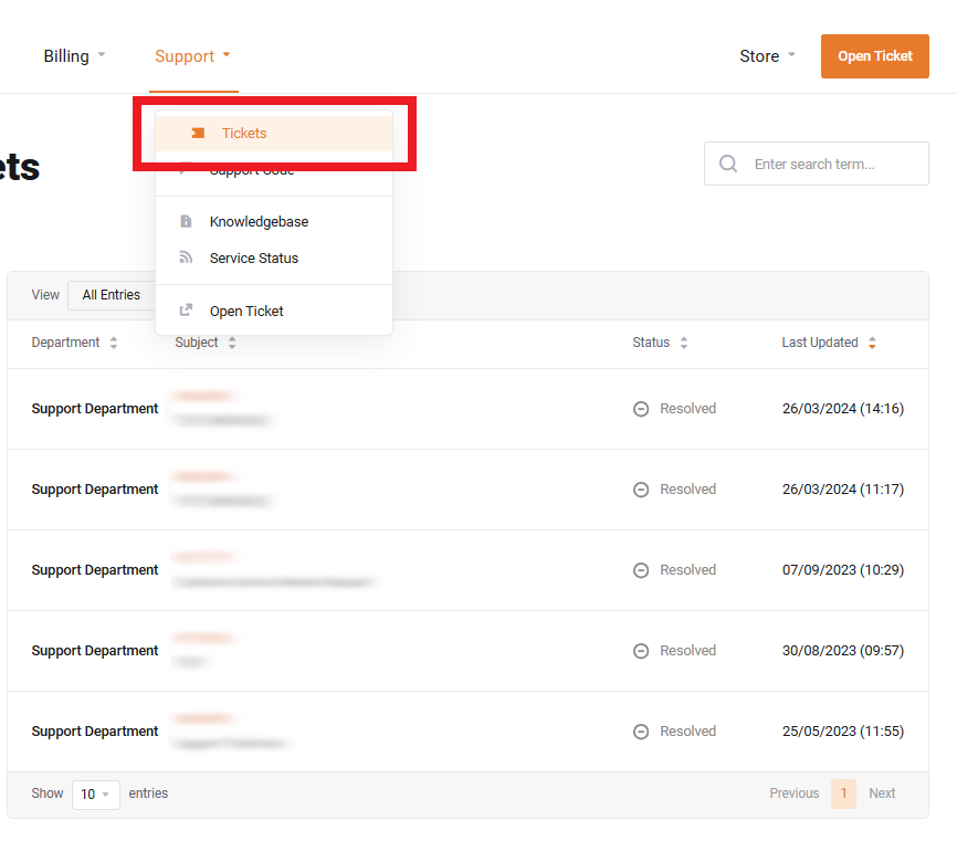 Viewing your Support Tickets #